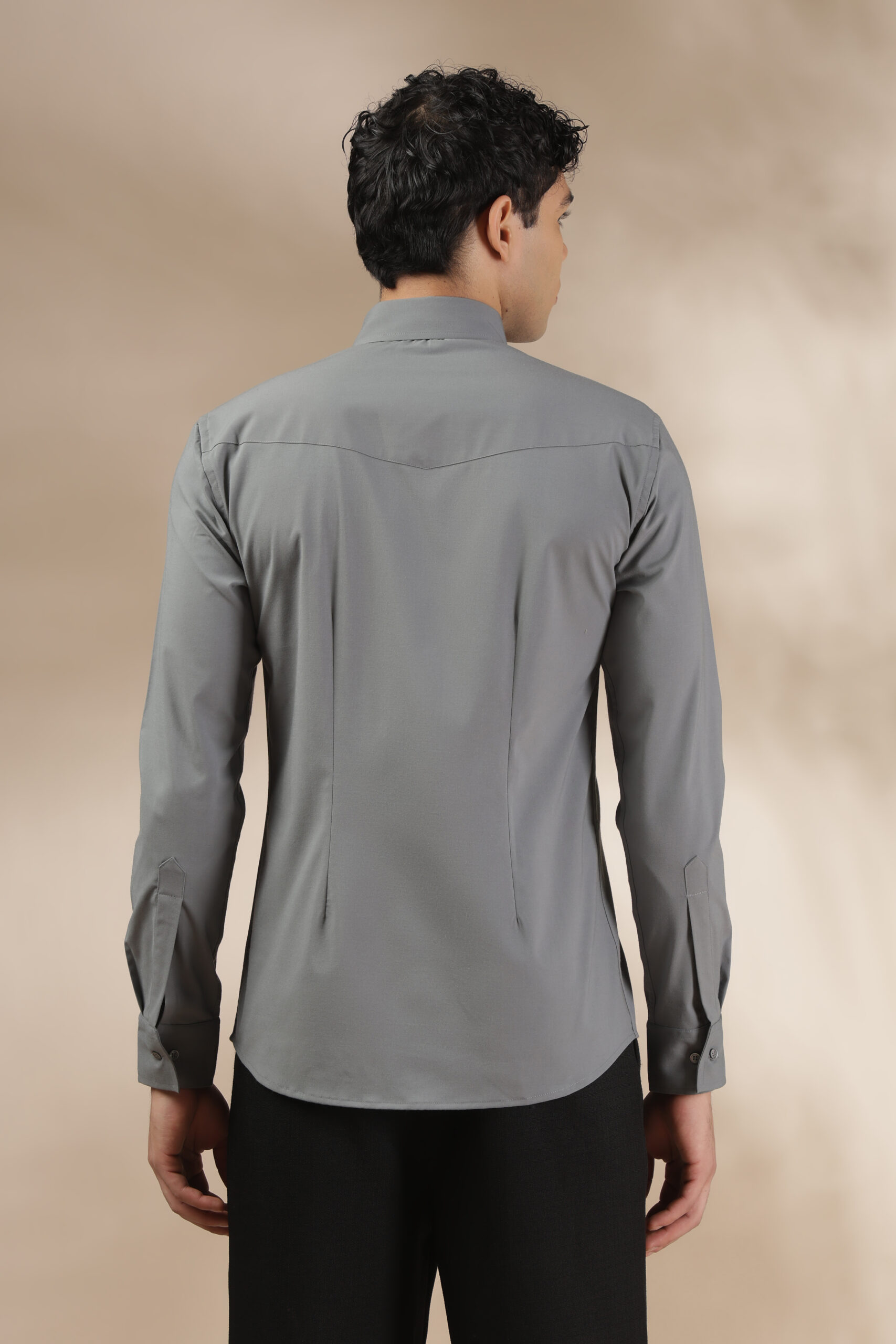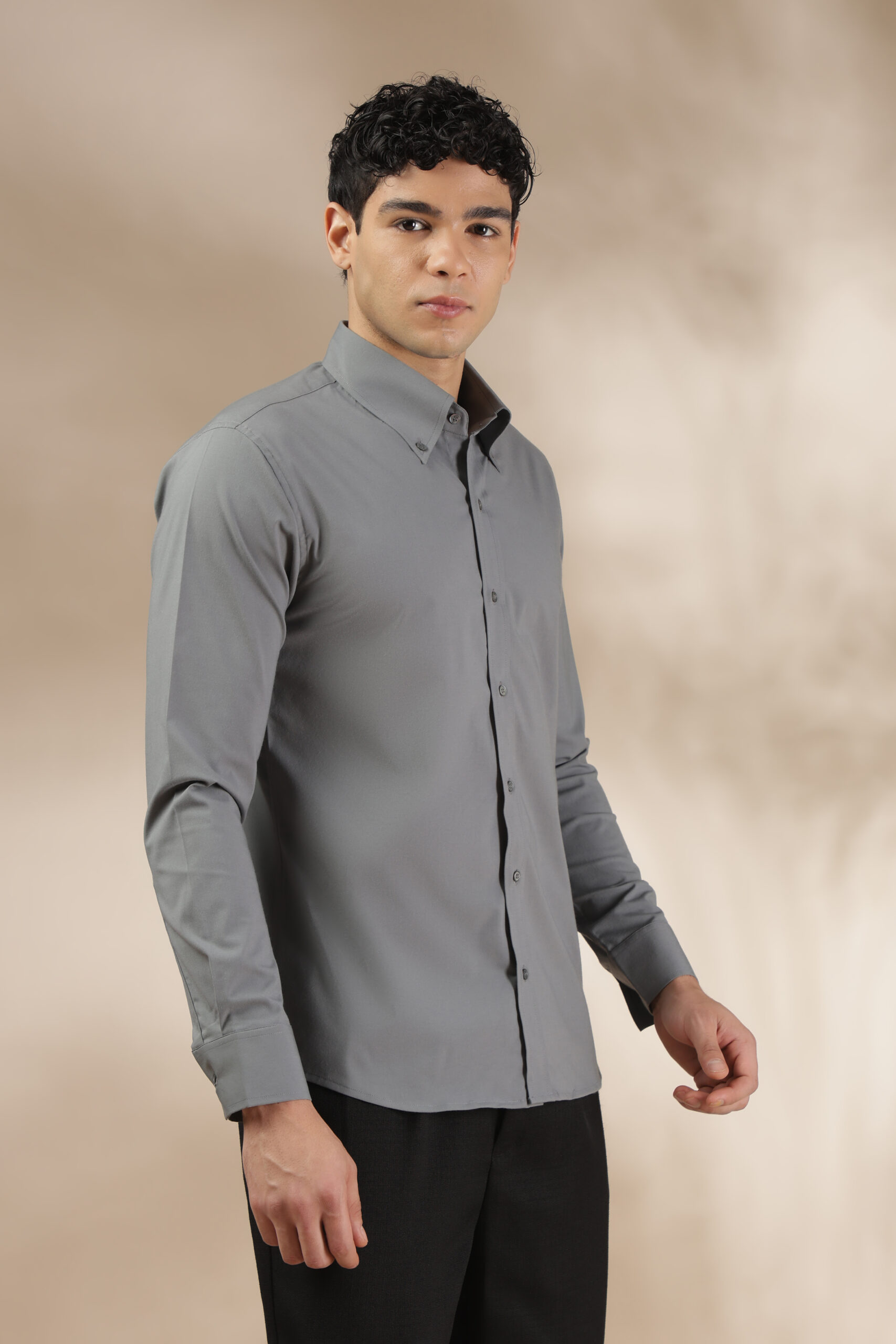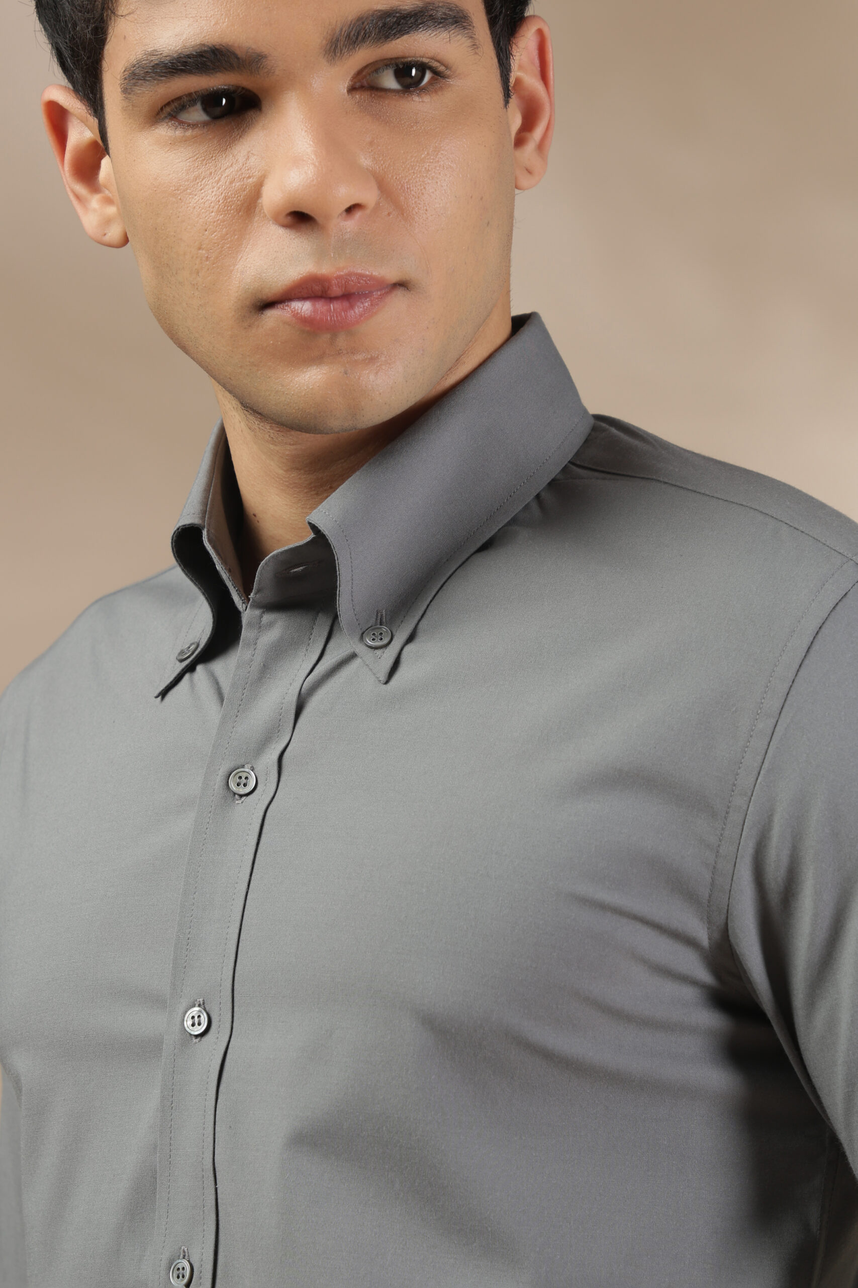 Dark Grey Muscle Fit Button Down Collar Shirt