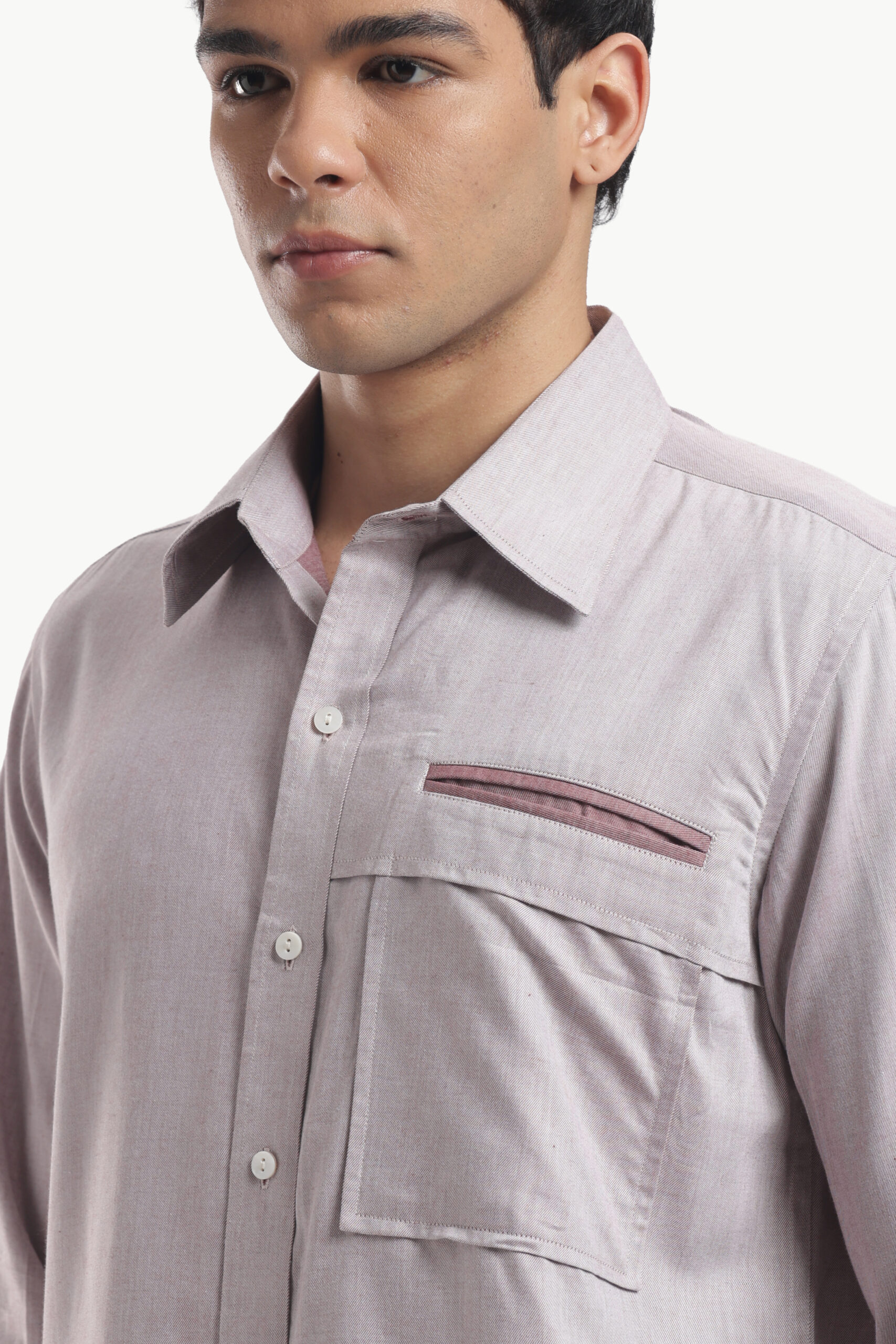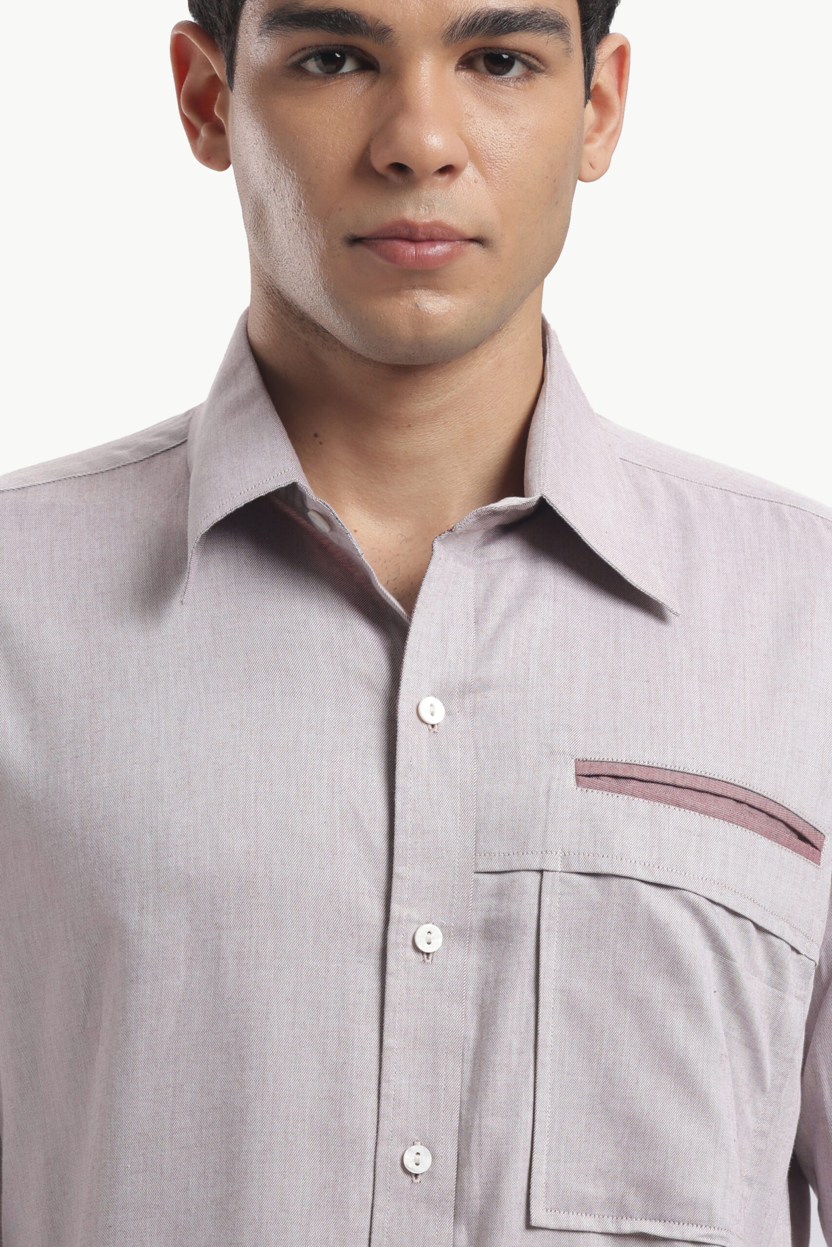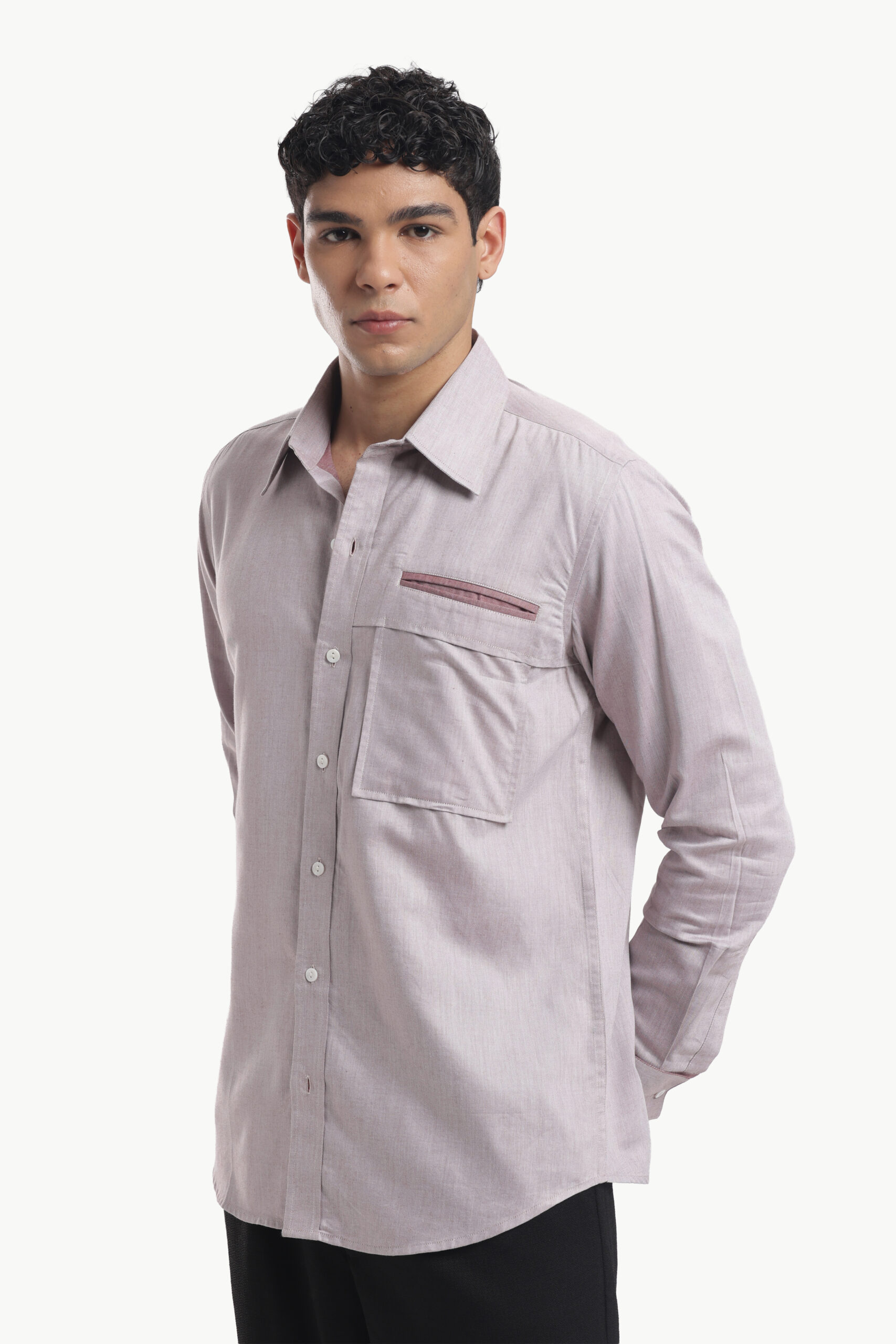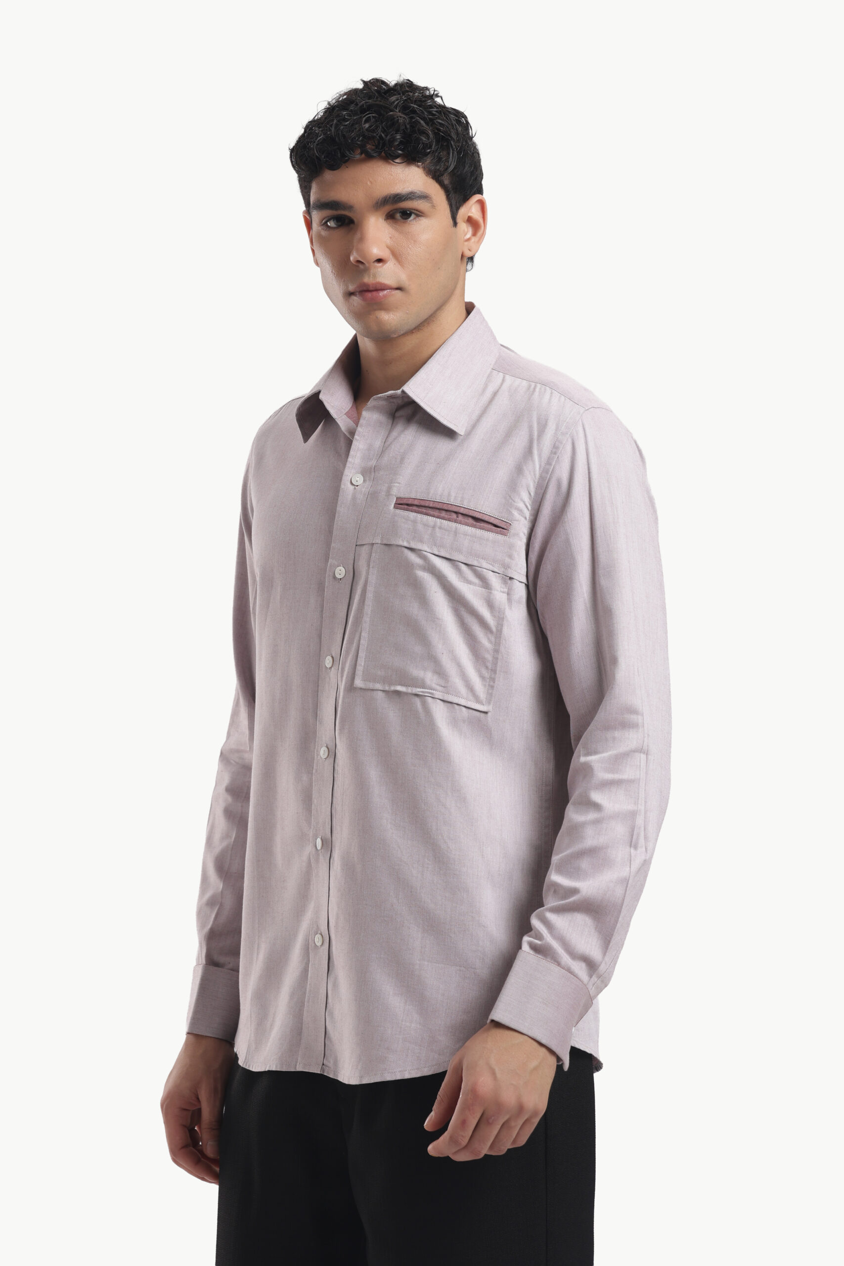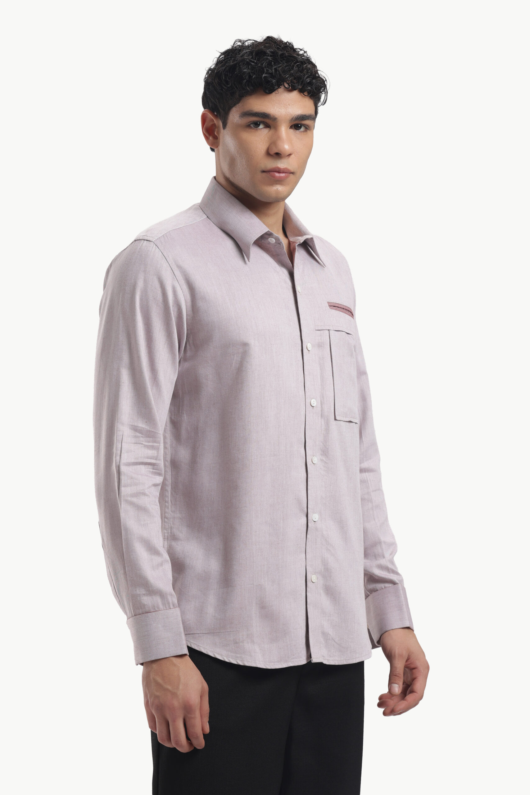 A sophisticated update to your weekday rotation, this Dusty Rose Gold shirt is designed for the man who values subtlety with detail. Cut from a breathable, lightweight weave with a gentle sheen, the shirt features a sharp spread collar, sleek front placket, and a chest pocket enhanced with a tonal horizontal trim. The inner collar lining and button thread detailing echo a refined contrast, while the tailored fit ensures a crisp silhouette. Finished with full sleeves and button cuffs, it’s ideal for desk-to-dinner transitions or a polished weekend brunch look.