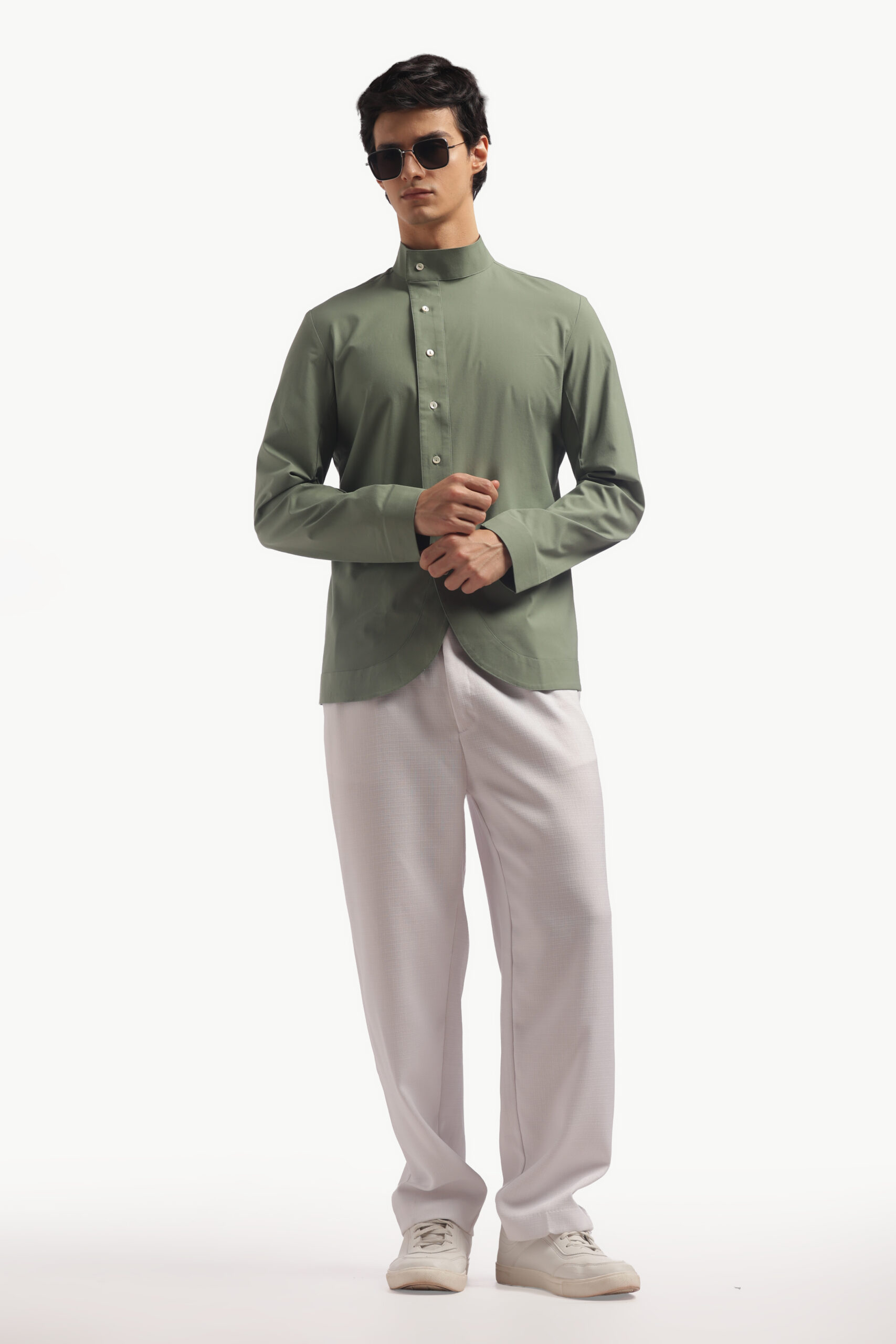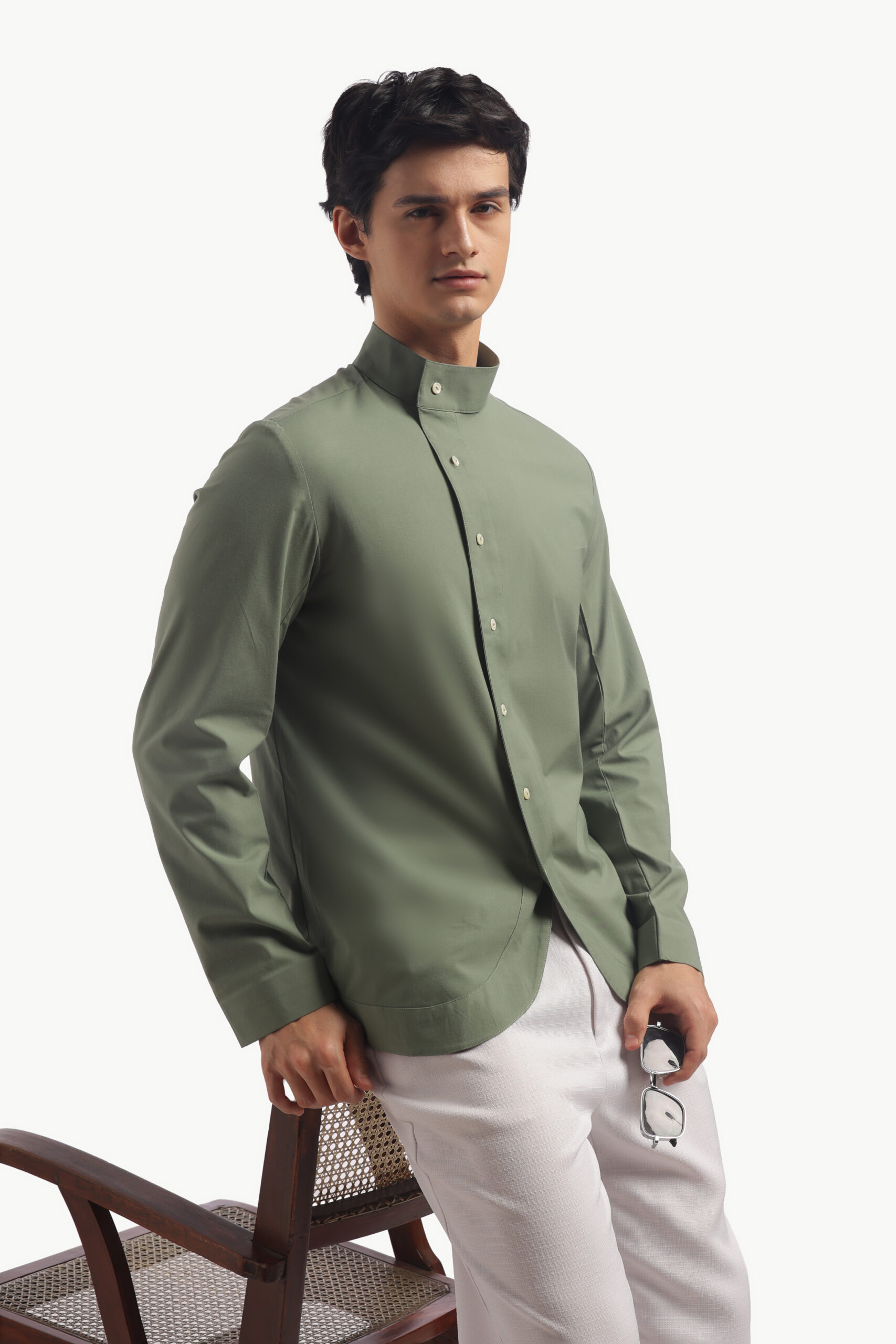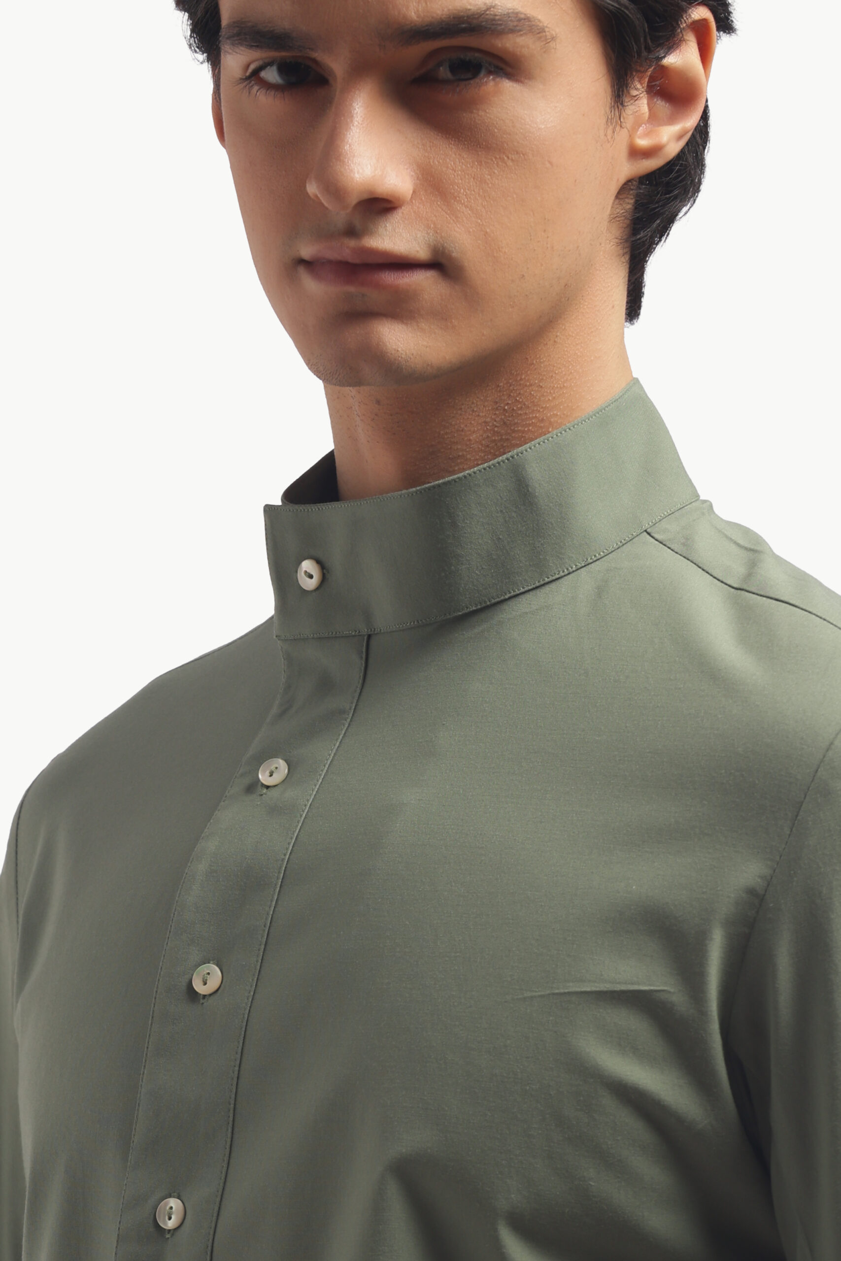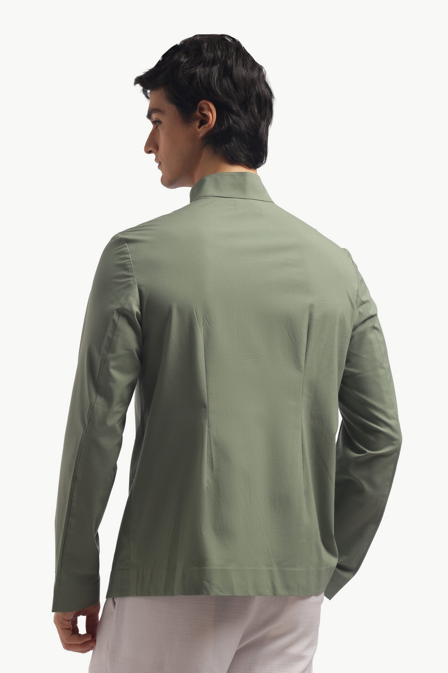 “Effortless Chic is showcased in this modern contemporary design with understated elegance in muted green. This easy to wear top is made from imported plain lycra and its relaxed fit will keep you comfortable. The mandarin collar and sleeves add a sophistication to this elegant piece. The standard button placket and a chic tulip type hemline complete the elevated refined look. The back construction will prove to be neat modern piece. For those who prefer producing a more “”no fuss”” look, this would suit easier casual or dressy occasion. Care: Dry clean only. Lowest heat steam iron preferred.”