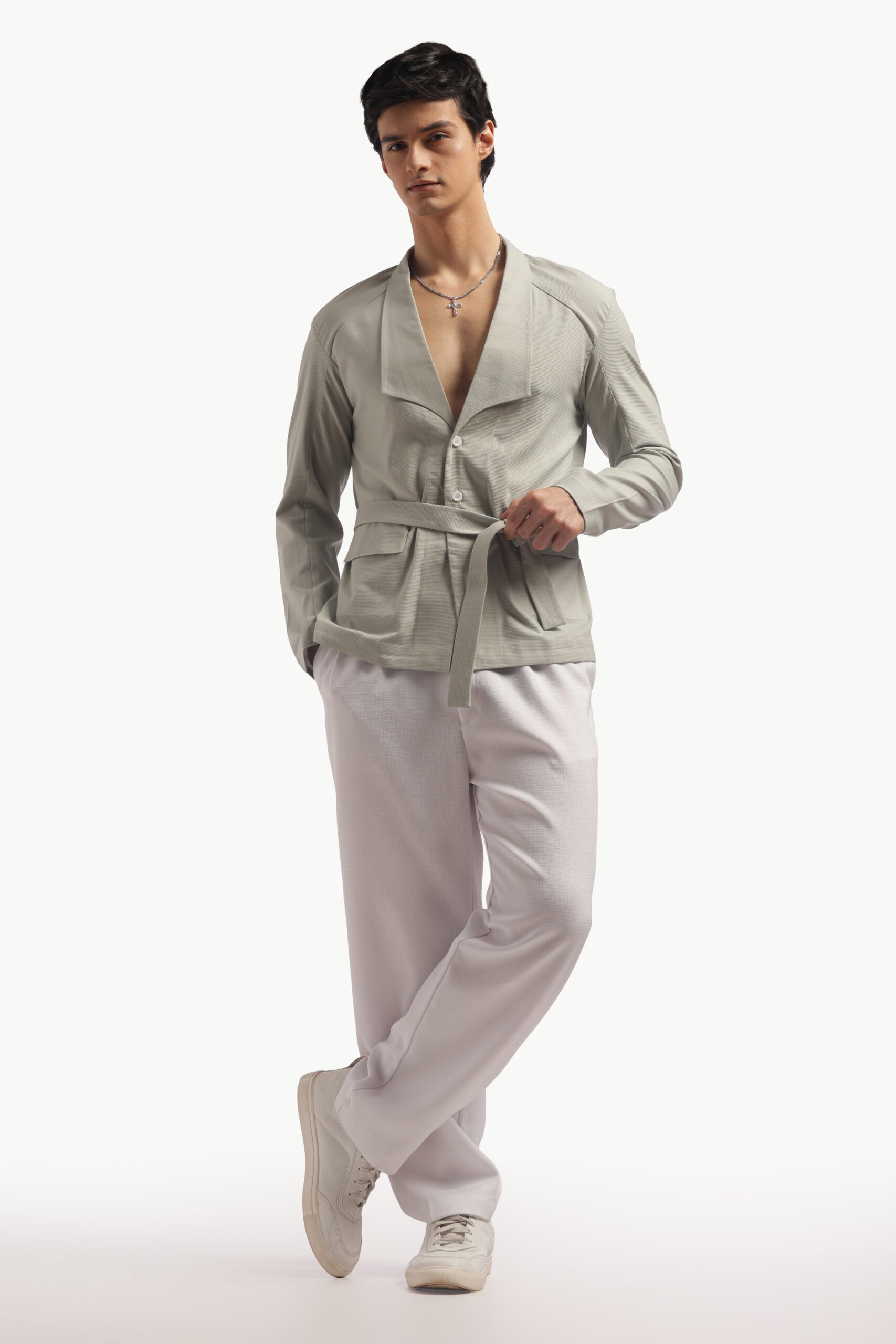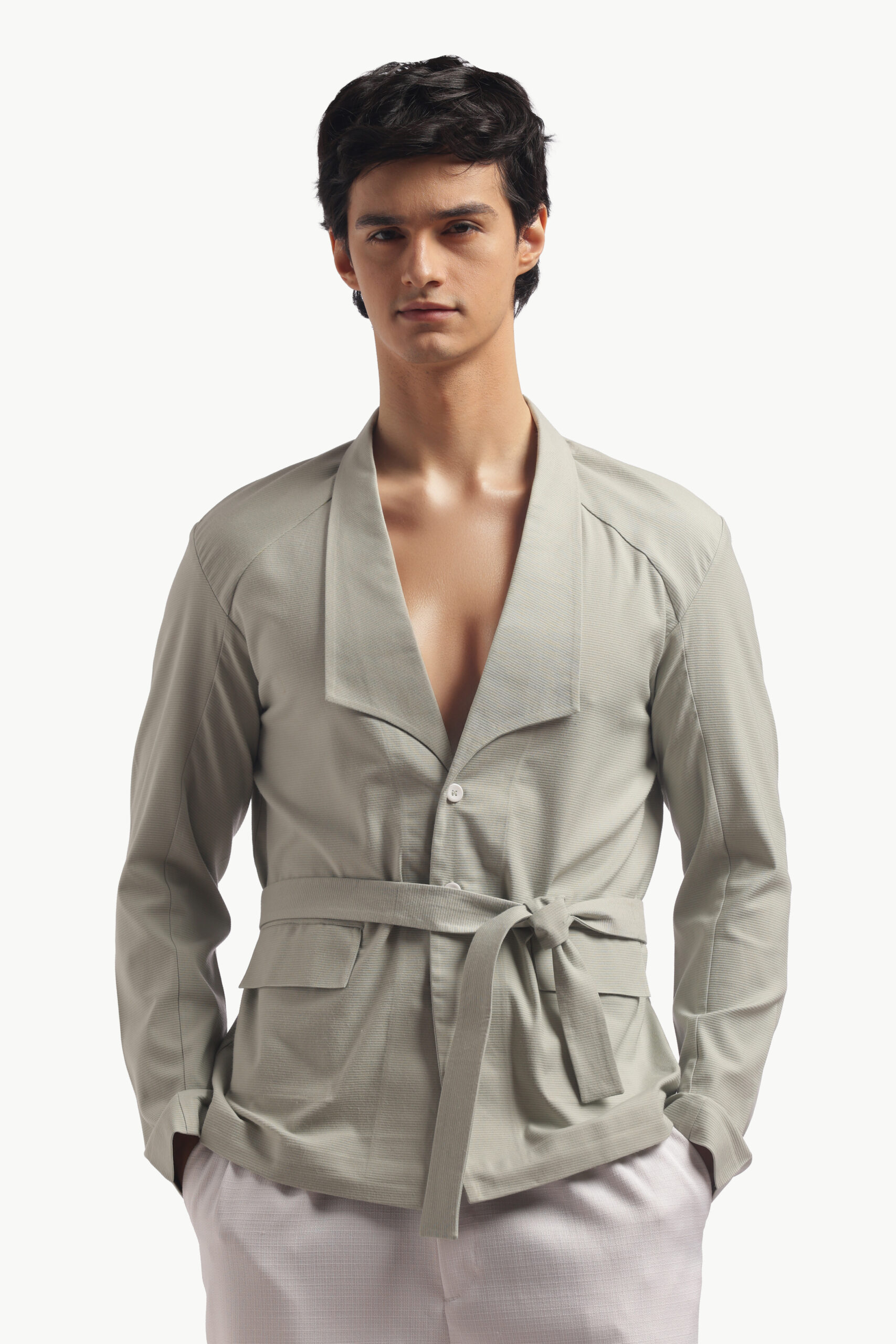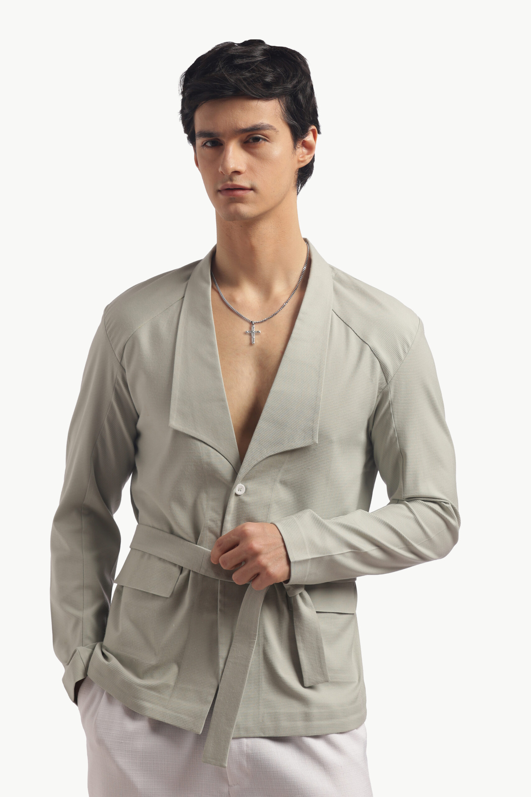 Be the first to review “Pastel Green Blazer Collar Belted Shirt”