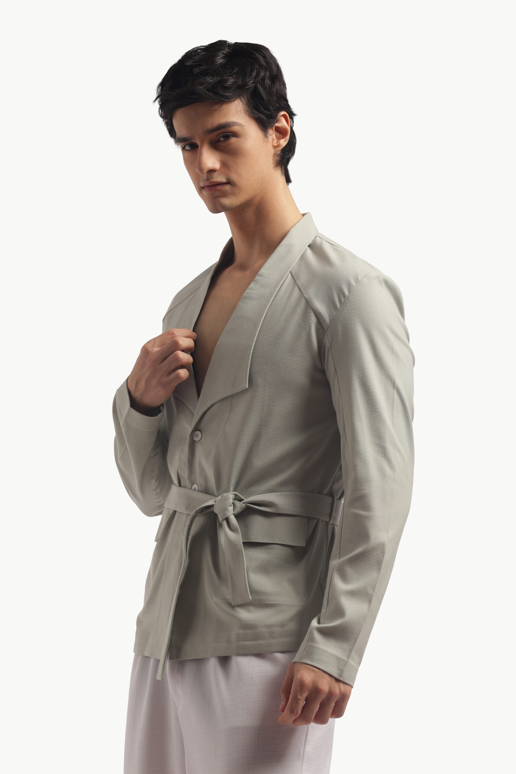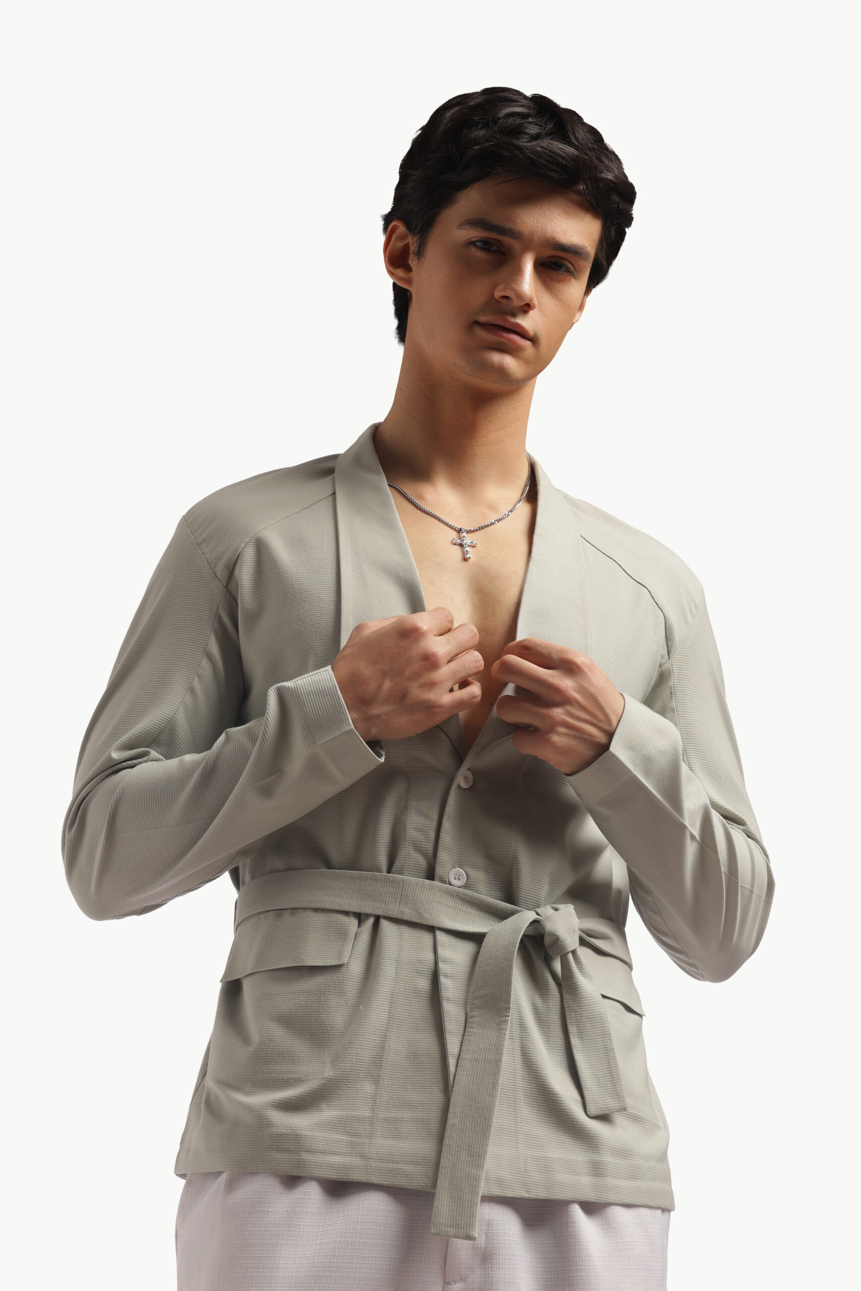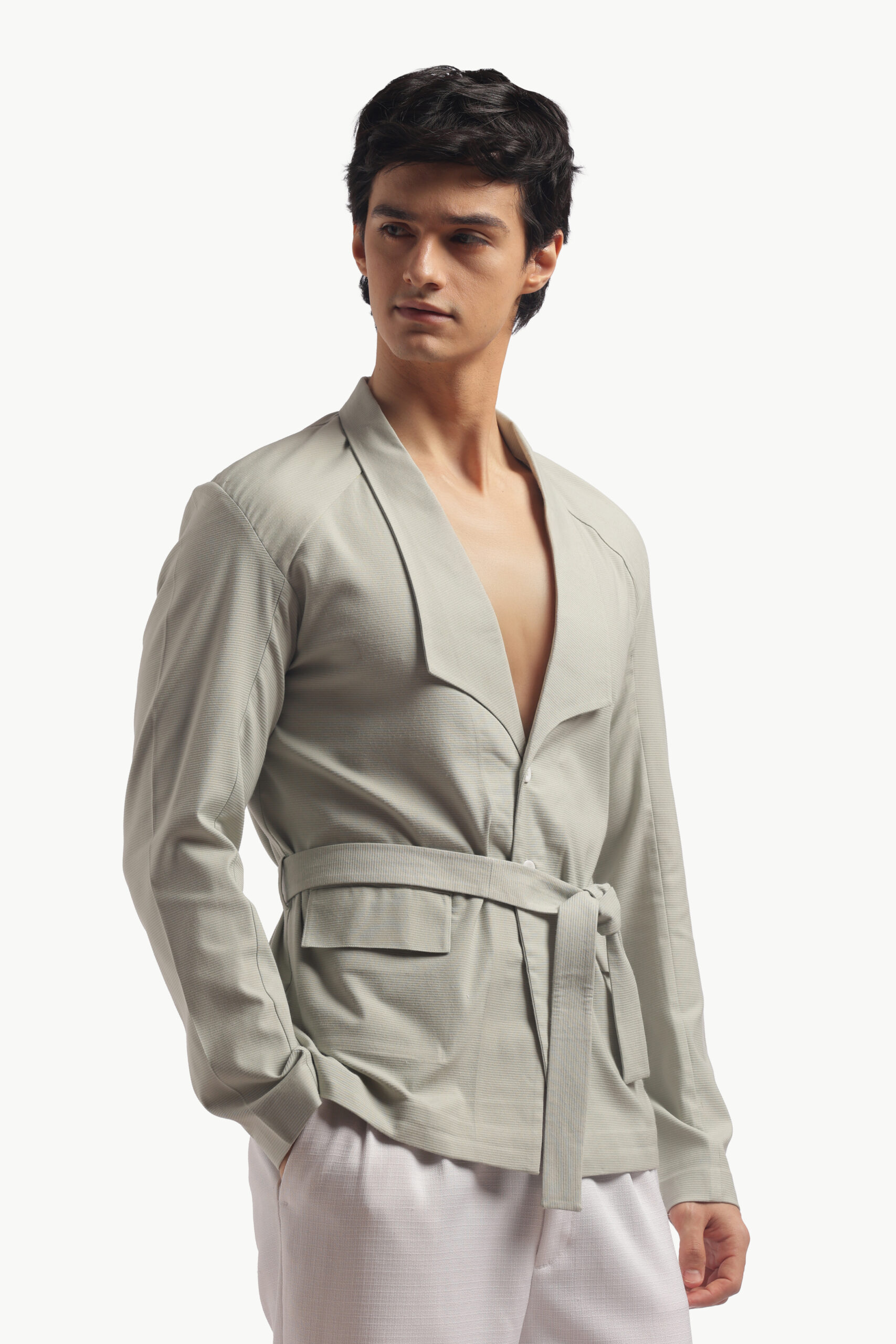 Be the first to review “Pastel Green Blazer Collar Belted Shirt”
